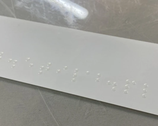Etykiety z napisami Braille'a są często wykorzystywane w farmacji oraz kosmetologii. Coraz popularniejsze staje się również umieszczanie tego typu napisów na etykietach produktów spożywczych oraz elektronice. Wykonanie takich oznaczeń wiąże się z niebywałą precyzją wykonania, tak aby osoby niewidome lub niedowidzące nie miały problemów ze skuteczną identyfikacją produktu.
